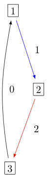 The crystal of tableaux of type ['A', 3] and shape(s) [[1, 1]]