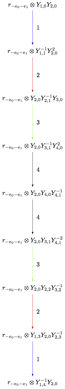 Sage uses the opposite convention for the tensor product rule to Kashiwara’s definition, so care must be taken when comparing the examples here with Kashiwara’s papers.